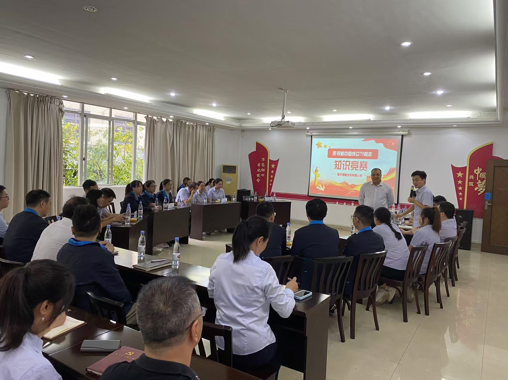 9月30日,在國慶節來臨之際,智慧水務公司組織開展“慶祝新中國成立75周年知識競賽”活動,共7支隊伍參賽,公司領導干部、黨員、團干、工會組長等近50名觀眾現場觀摩